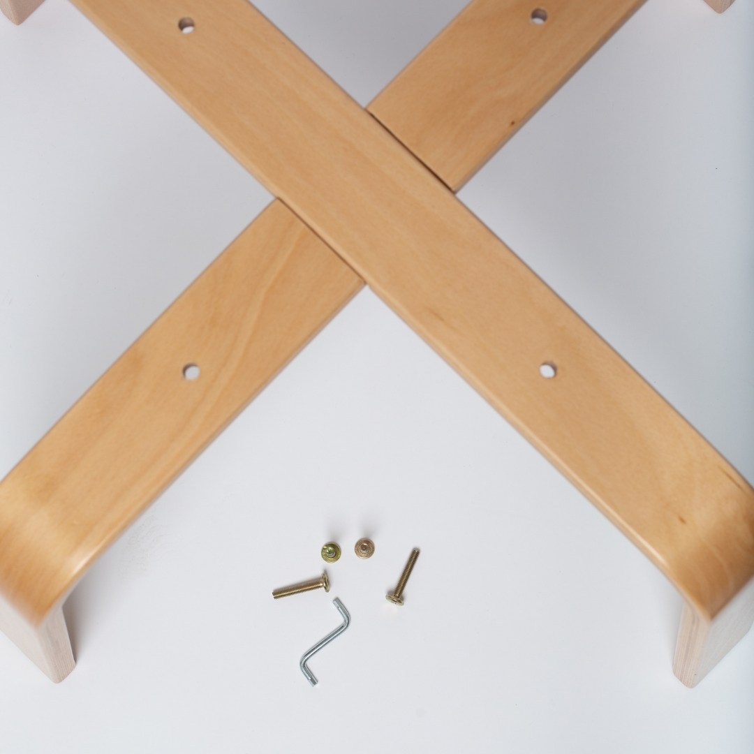 Characterized by its clean lines and minimalistic appearance, the cross-connection of wooden legs is the secret of equilibrium and stability.